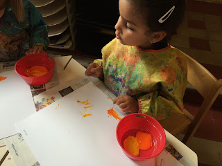 | Bij juf Dorien knutselen we een schaapje. Eerst moeten de poten (twee houten wasknijpers) zwart geverfd worden. |