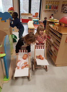 In de poppenkamer konden we ons helemaal inleven in het thema door een ruim aanbod aan babymaterialen.